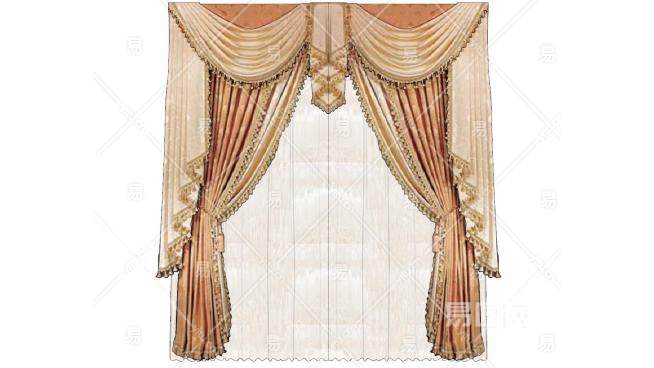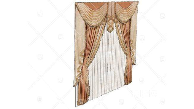 欧式风格丝柔垂帘和纱帘SU模型下载_sketchup草图大师SKP模型