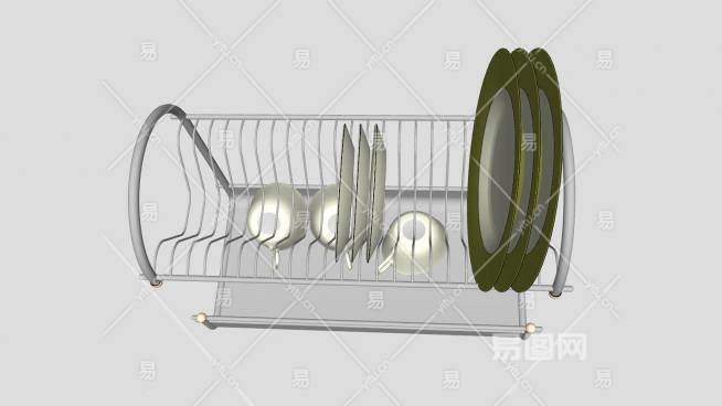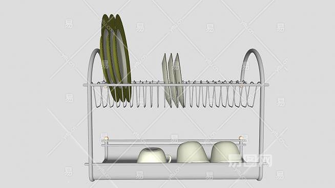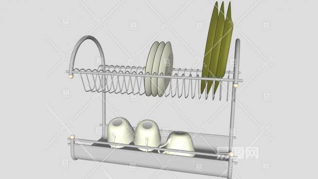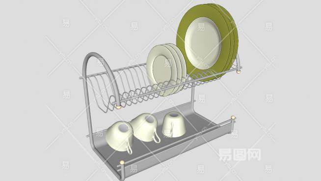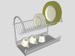 这是晾碗架碟子陶瓷杯SU模型,厨房餐具器。晾碗架碟子陶瓷杯SU模型下载_sketchup图大师SKP模型