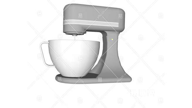 这是台面混合器SU模型,灰色和银色的搅拌机与银碗。台面混合器SU模型下载_sketchup图大师SKP模型