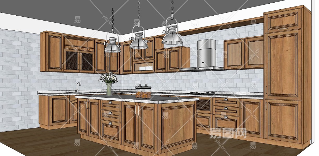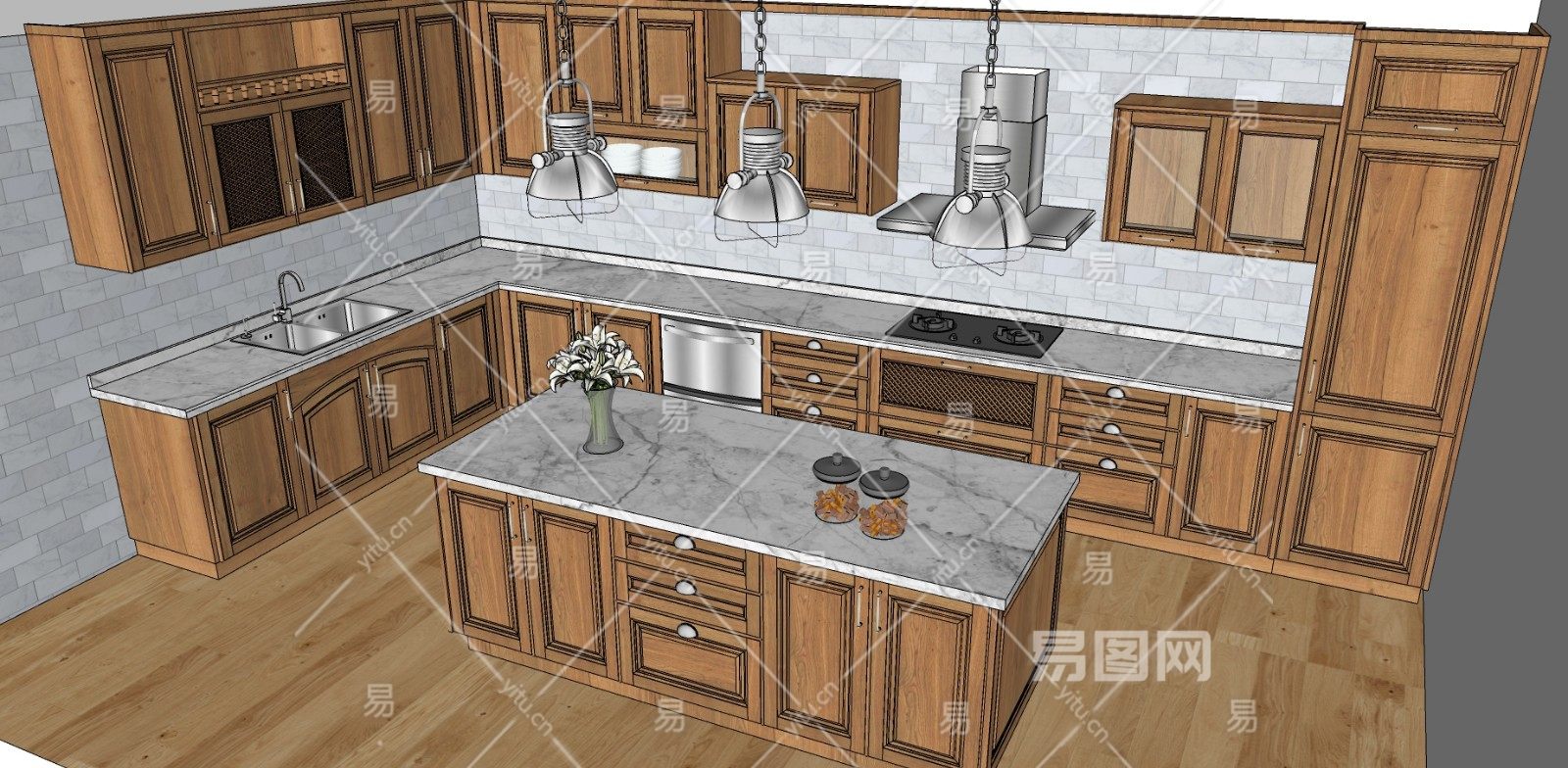 当前的位置:首页 > sketchup > sketchup模型 > 厨卫用品 > 厨具 > 简欧厨房 厨具橱柜岛台厨房用品