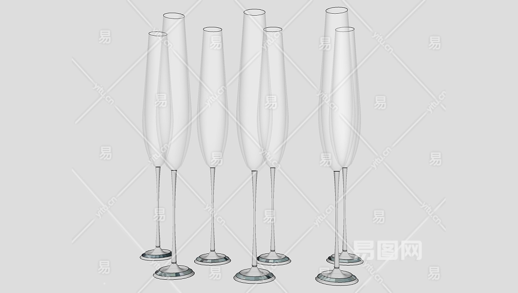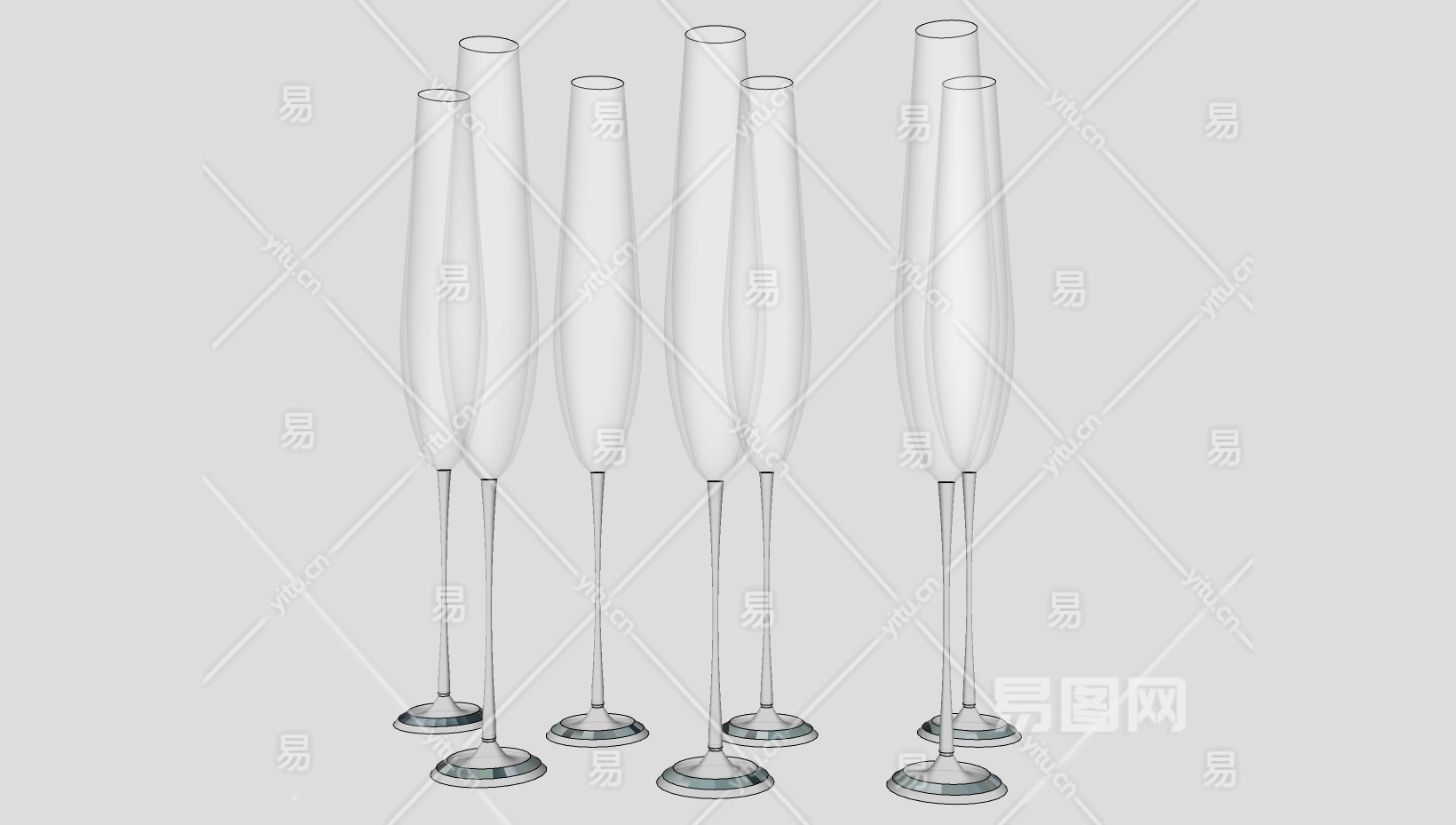 透明高脚杯 酒杯 玻璃杯su草图模型下载