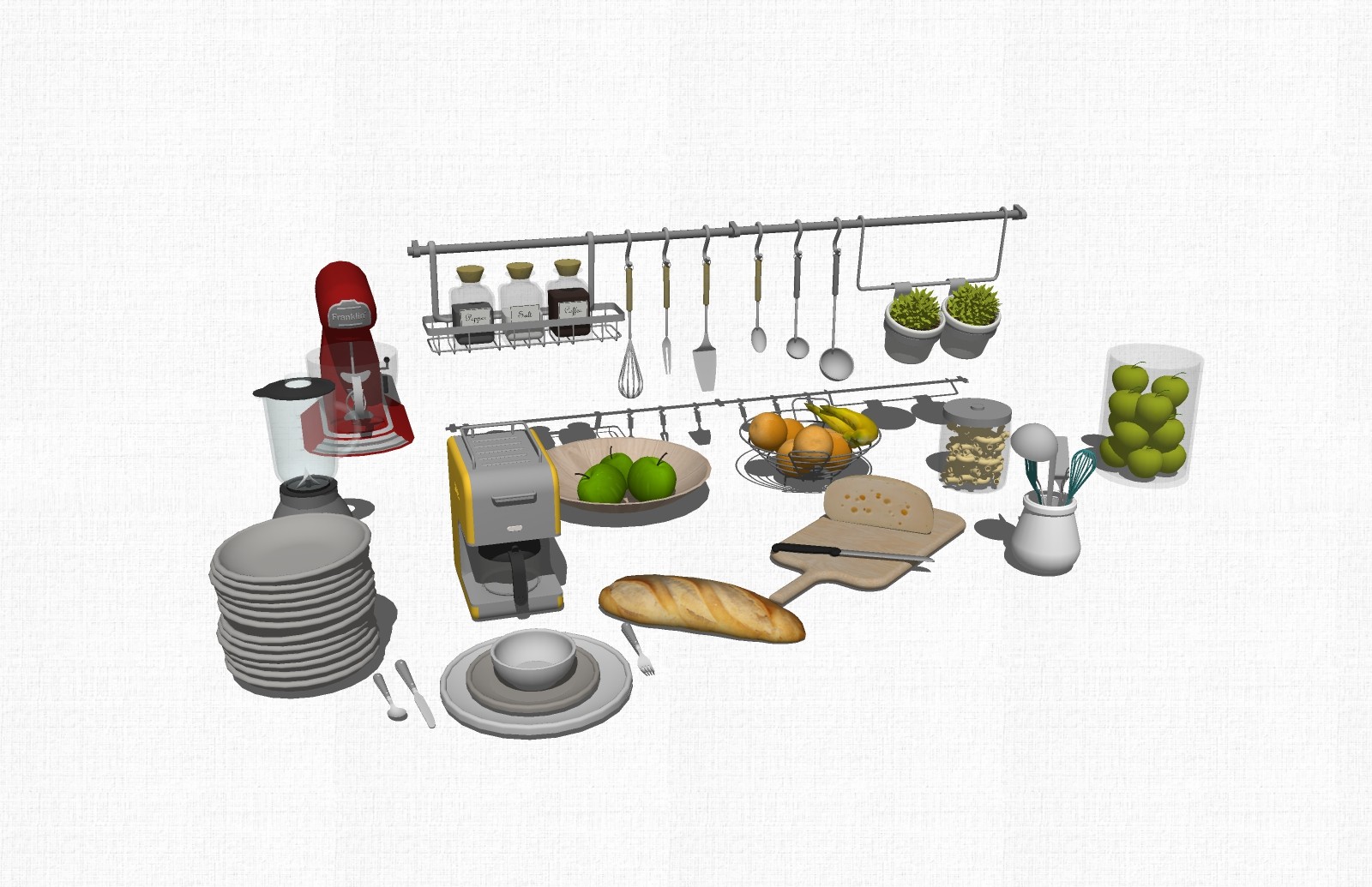 现代厨房电器盘碗菜板储物罐草图大师模型,厨房电器盘碗菜板储物罐sketchup模型下载
