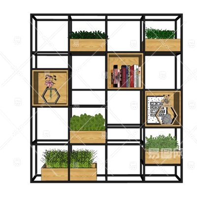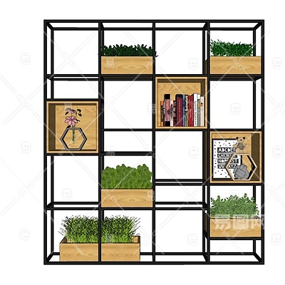 现代实木装饰架su模型