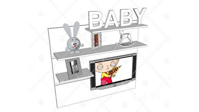 儿童电视墙SU模型下载_sketchup草图大师SKP模型