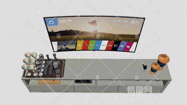 电视机电视柜SU模型下载_sketchup草图大师SKP模型
