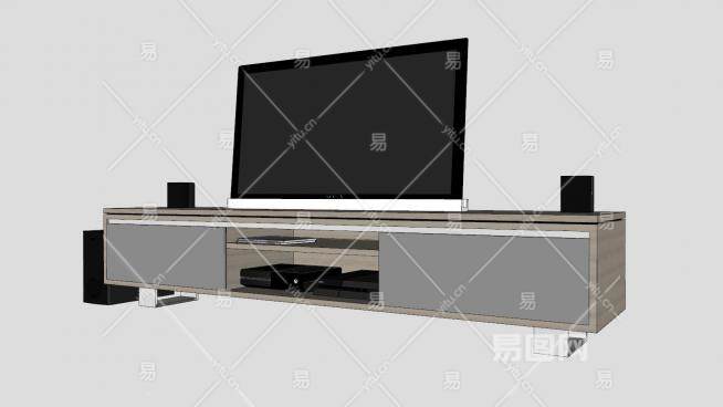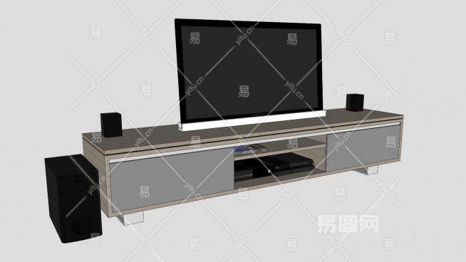木制简约电视柜电视机SU模型下载_sketchup草图大师SKP模型