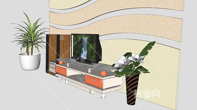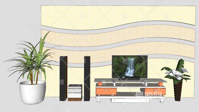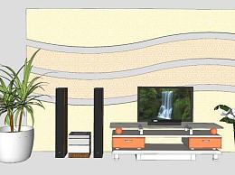 电视柜背景墙盆景音响设备SU模型下载_sketchup草图大师SKP模型