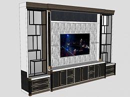 电视背景墙电视柜电视架SU模型下载_sketchup草图大师SKP模型