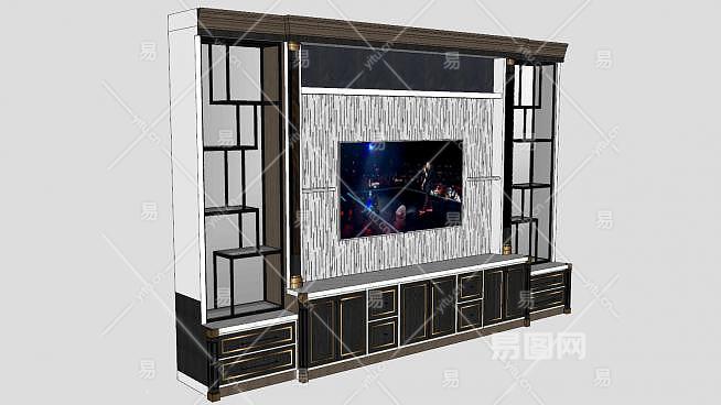 这是电视背景电视电视架SU模型,随着们对家居装修的重新认识,电视柜又多了一个新的功能,装饰电视柜作为家庭必备家具,电视柜的高度及尺寸在设计或者购买的时候一定要注意,很多都忽略掉了电视柜的高度及尺寸。电视背景电视电视架SU模型下载_sketchup图大师SKP模型