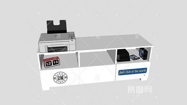地柜式客厅白色电视柜SU模型下载_sketchup草图大师SKP模型