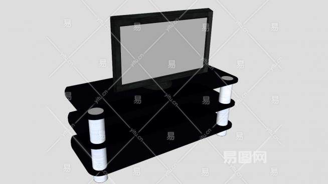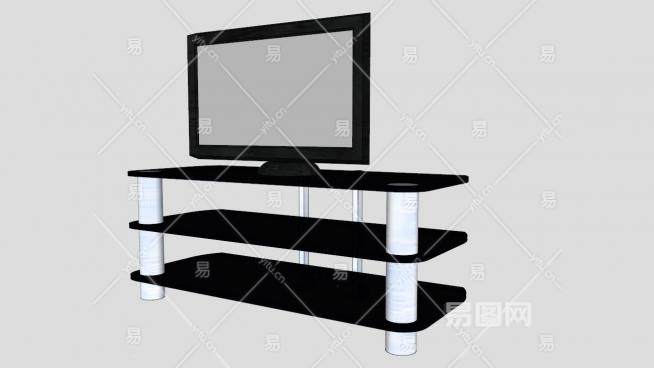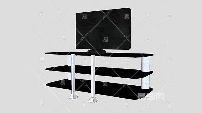 这是黑色简约电视柜SU模型,v代表玻璃架子和平板电视。。黑色简约电视柜SU模型下载_sketchup图大师SKP模型