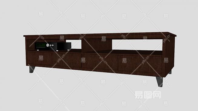 这是实木复古电视柜SU模型,一个简单的电视桌子。有环绕立体声接收器和其他电子设备。实木复古电视柜SU模型下载_sketchup图大师SKP模型