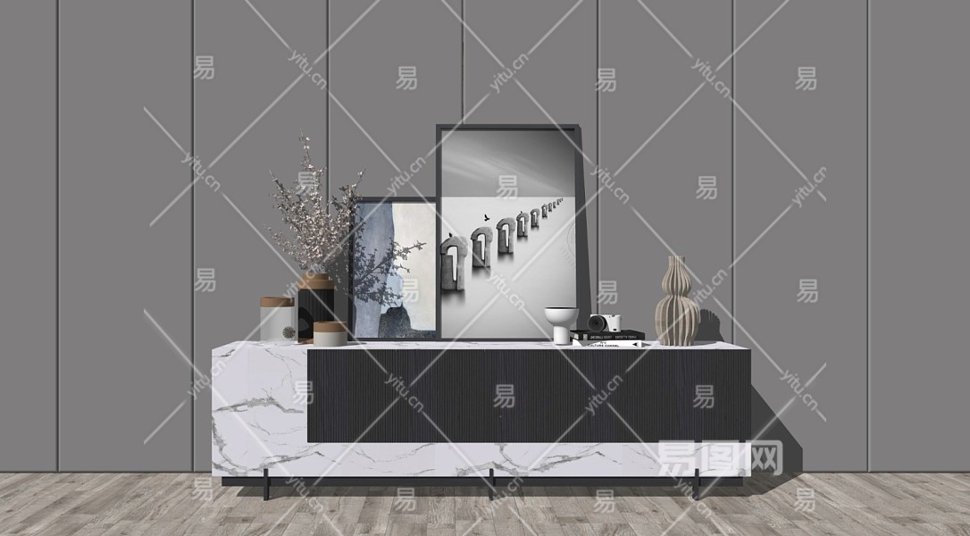 当前的位置:首页 > sketchup > sketchup模型 > 柜子 > 电视柜 > 现代简约电视柜摆件组合装饰画盆栽花瓶相机书籍景墙
