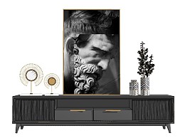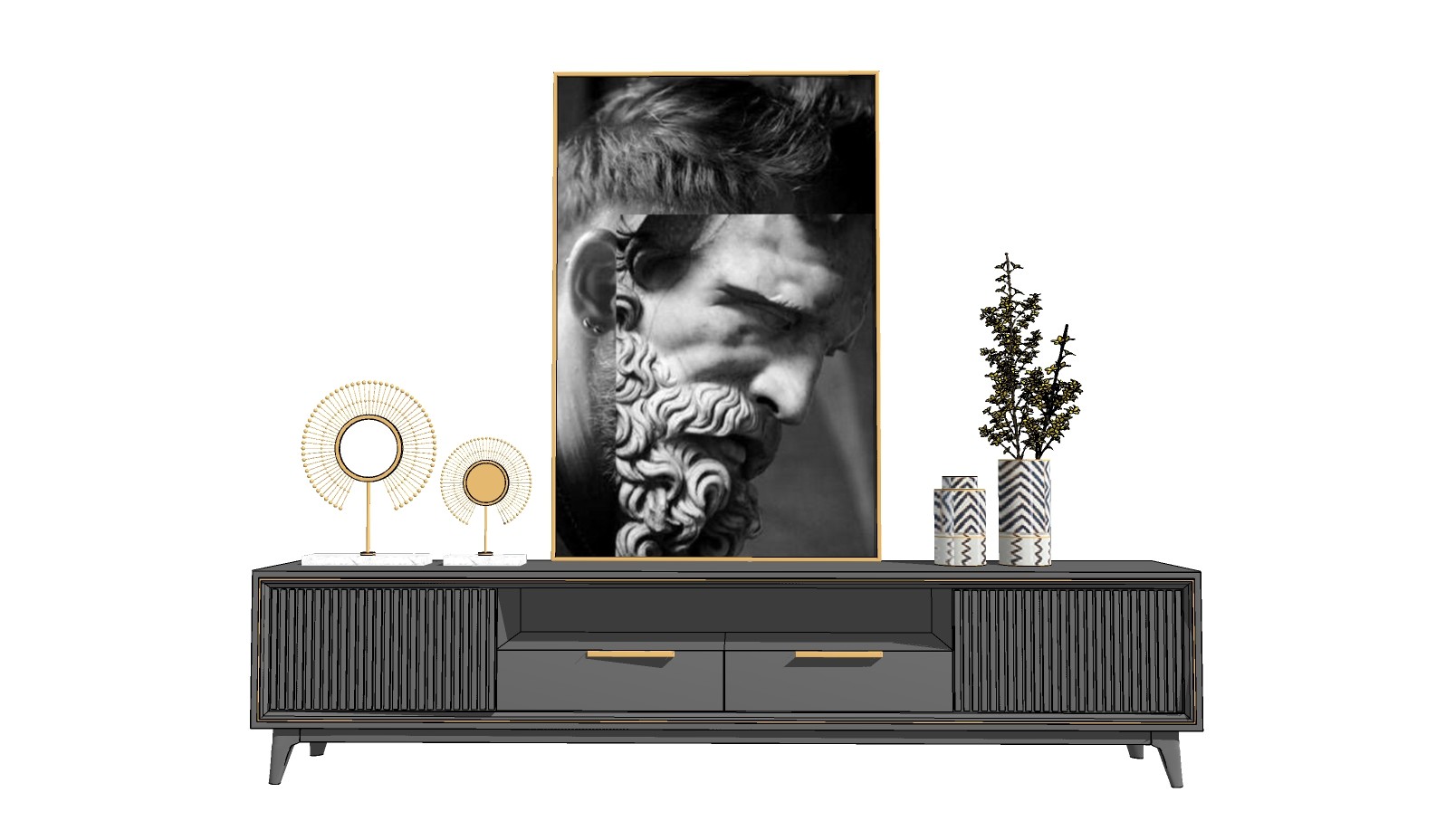 现代实木电视柜组合草图大师模型,电视柜su模型下载