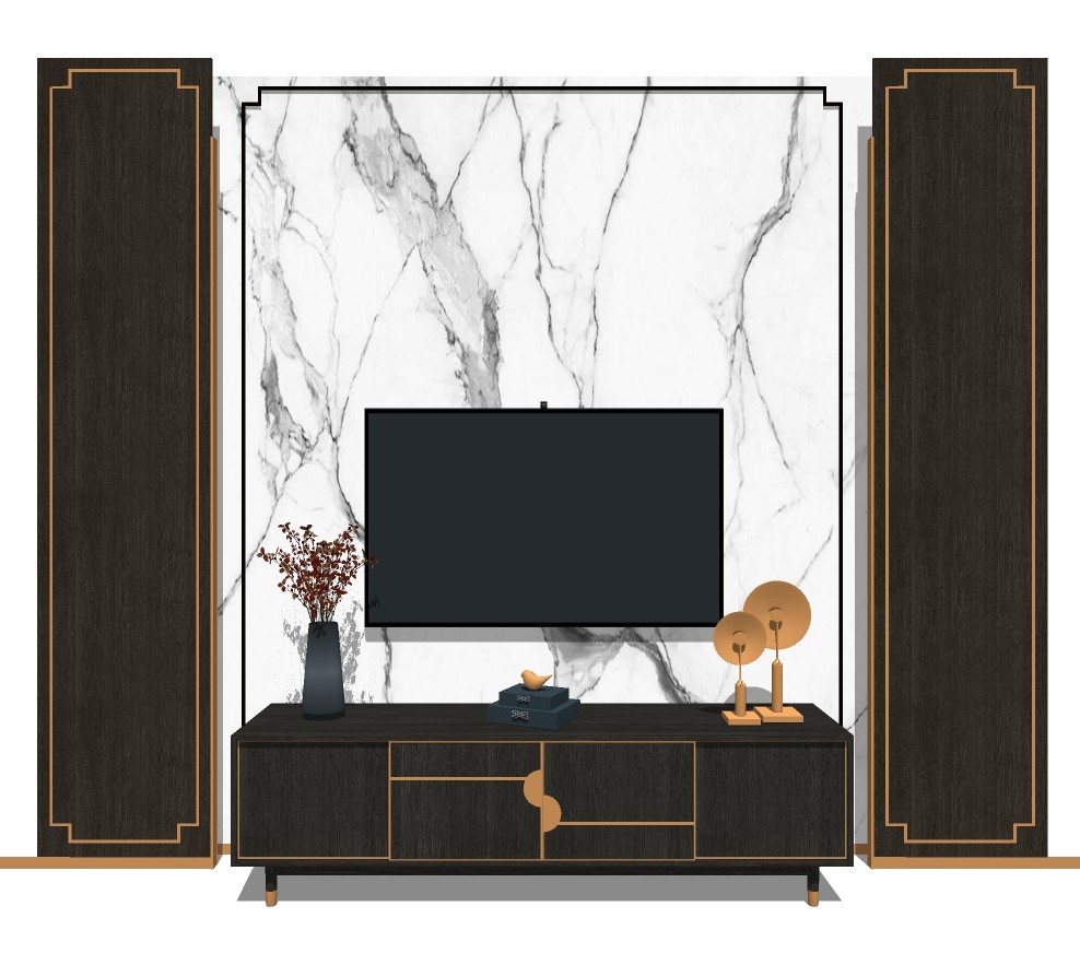 现代简约电视柜组合草图大师模型,电视柜su模型下载