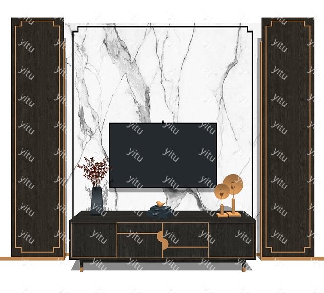 现代简约电视摆件组合图大师模型,现代简约电视摆件组合,设色墙面衬托出柜体的自然清新是不可多得的现代原木风格电视摆件,易图网为您提供下载服务,好看实用。