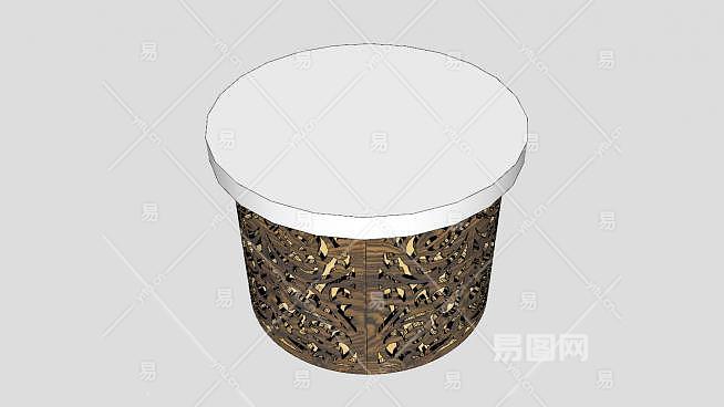 镂雕花纹咖啡桌圆桌SU模型下载_sketchup草图大师SKP模型