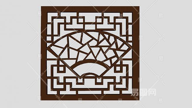 扇形窗花雕花SU模型下载_sketchup草图大师SKP模型