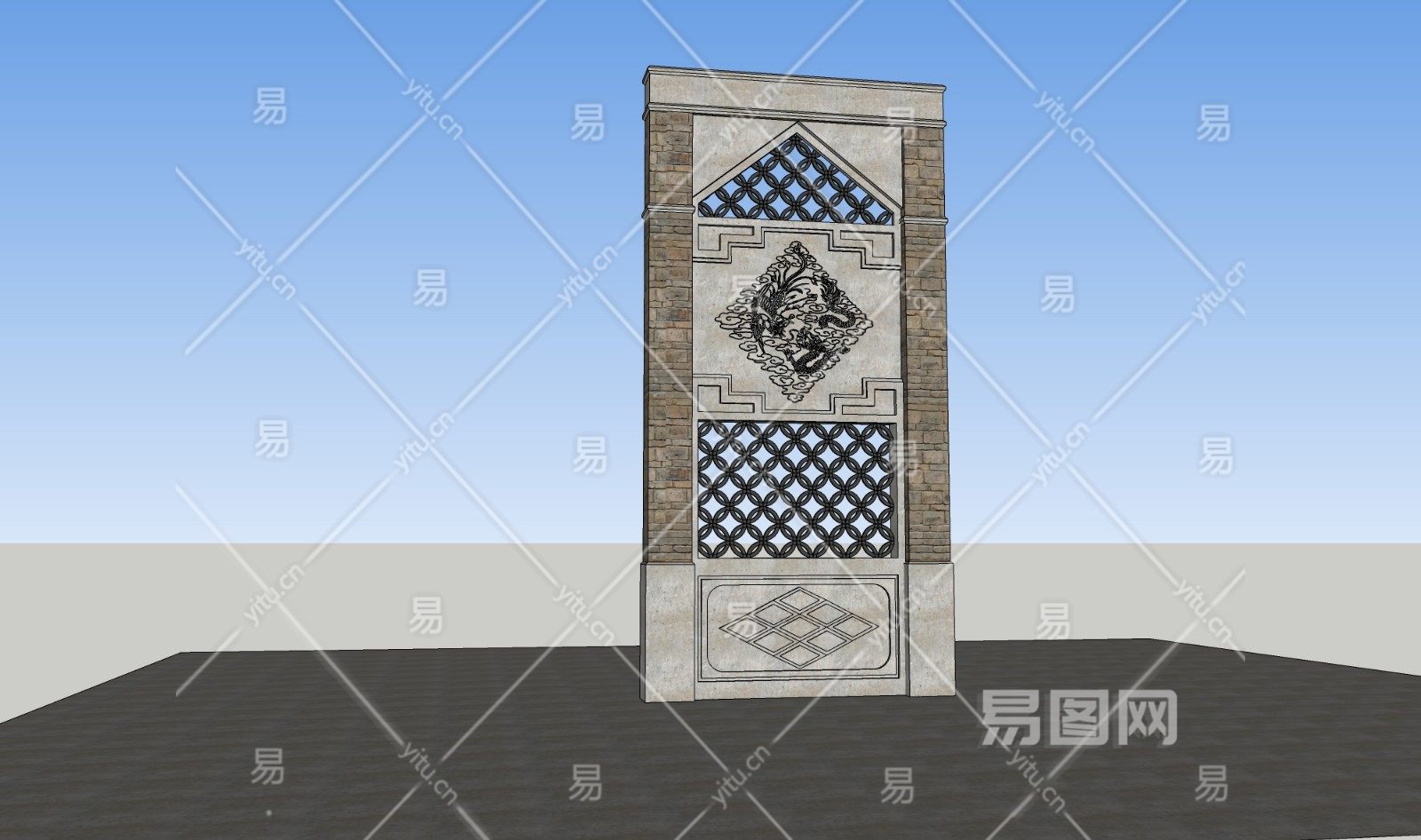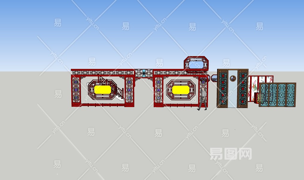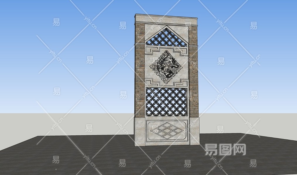 中式雕花窗门廊sketchup模型下载