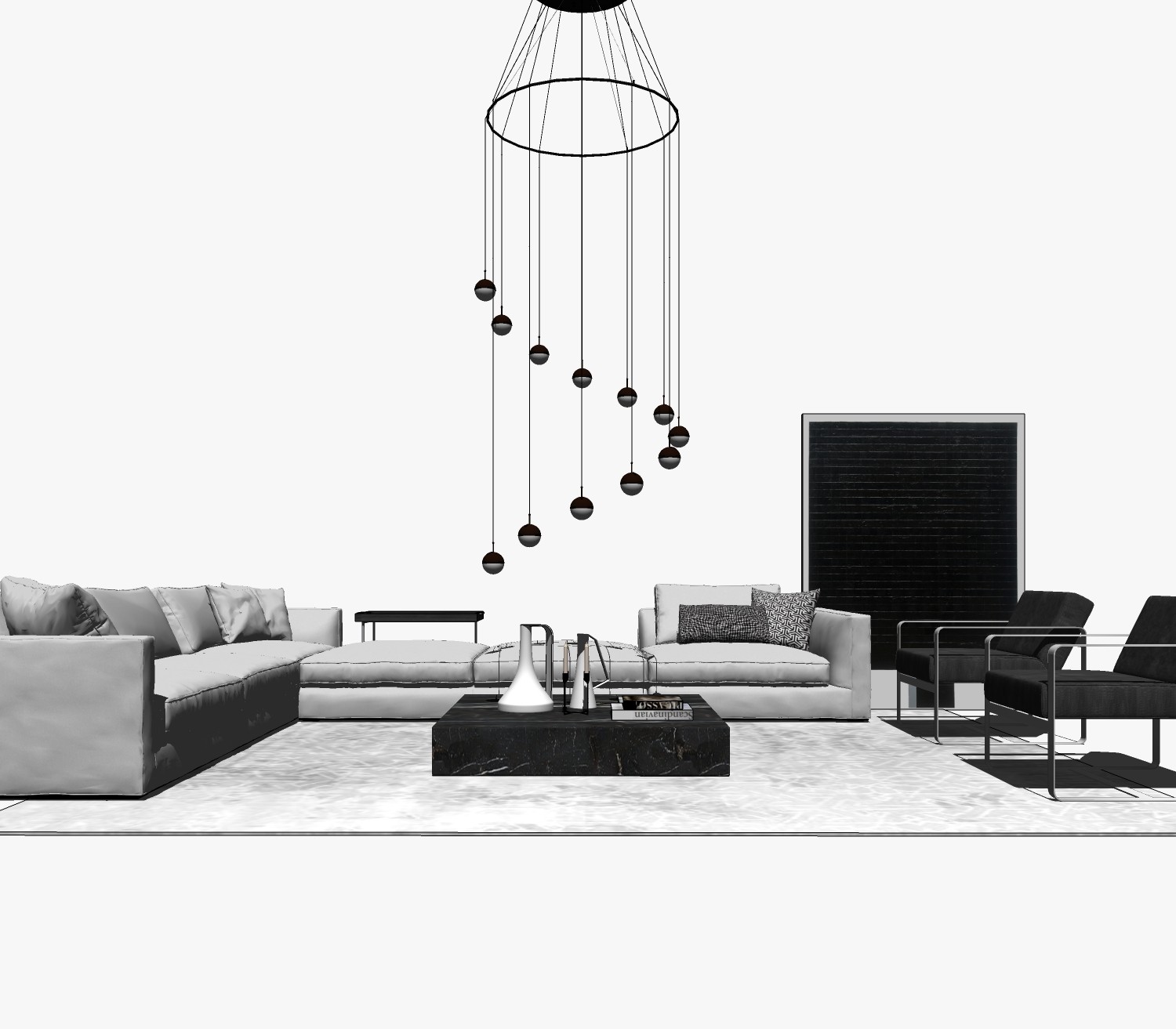 现代布艺多人沙发组合su模型,多人沙发组合sketchup模型下载