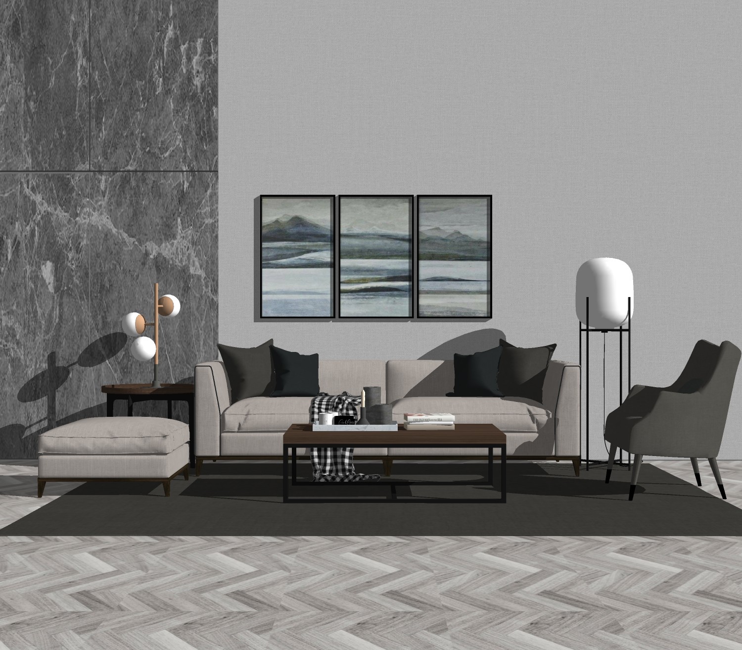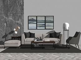 现代布艺沙发组合su模型,沙发沙发茶几组合skp模型下载
