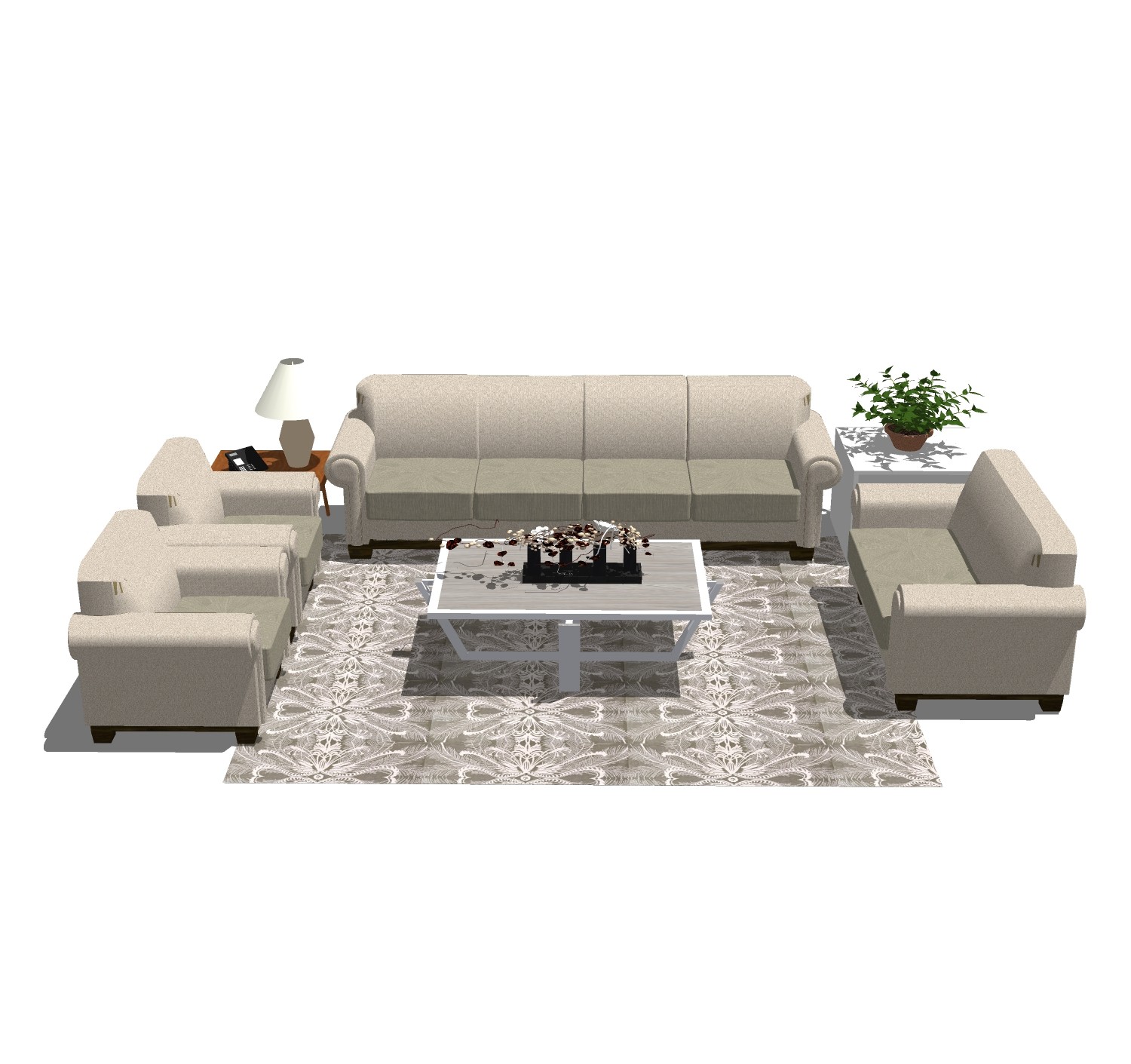 简欧组合沙发免费su模型,组合沙发sketchup模型下载