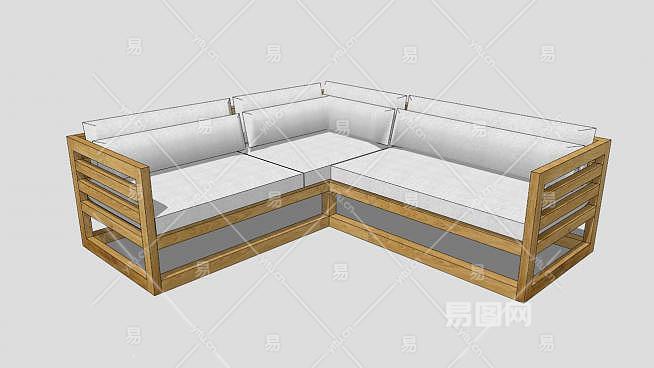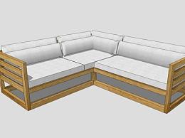 家庭木质转角沙发SU模型下载_sketchup草图大师SKP模型