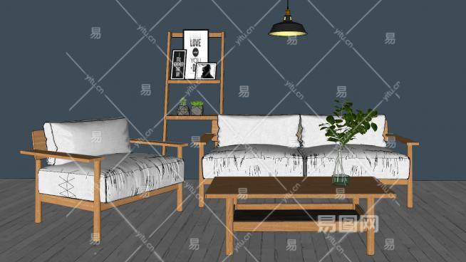 木沙发茶几画架SU模型下载_sketchup草图大师SKP模型