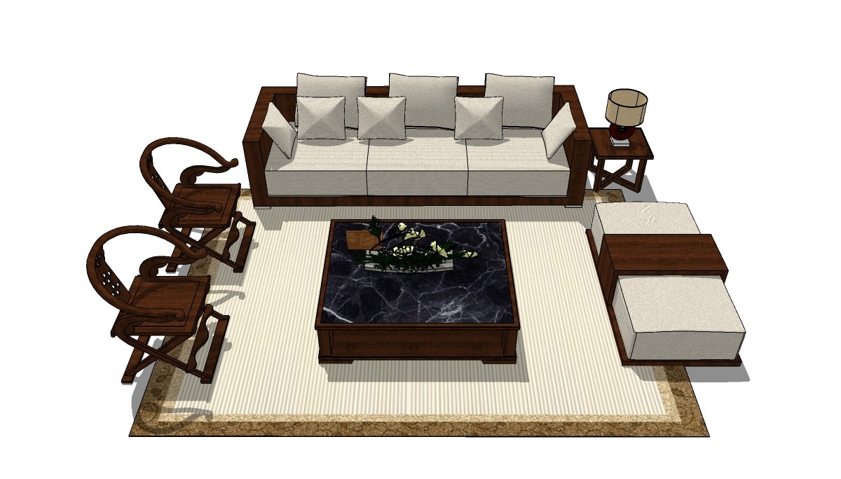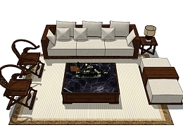 新中式多人沙发草图大师模型,多人沙发sketchup模型下载