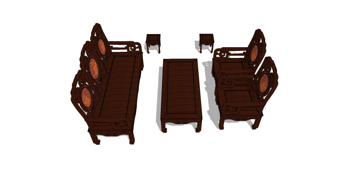 中式多人沙发草图大师模型,多人沙发sketchup模型下载