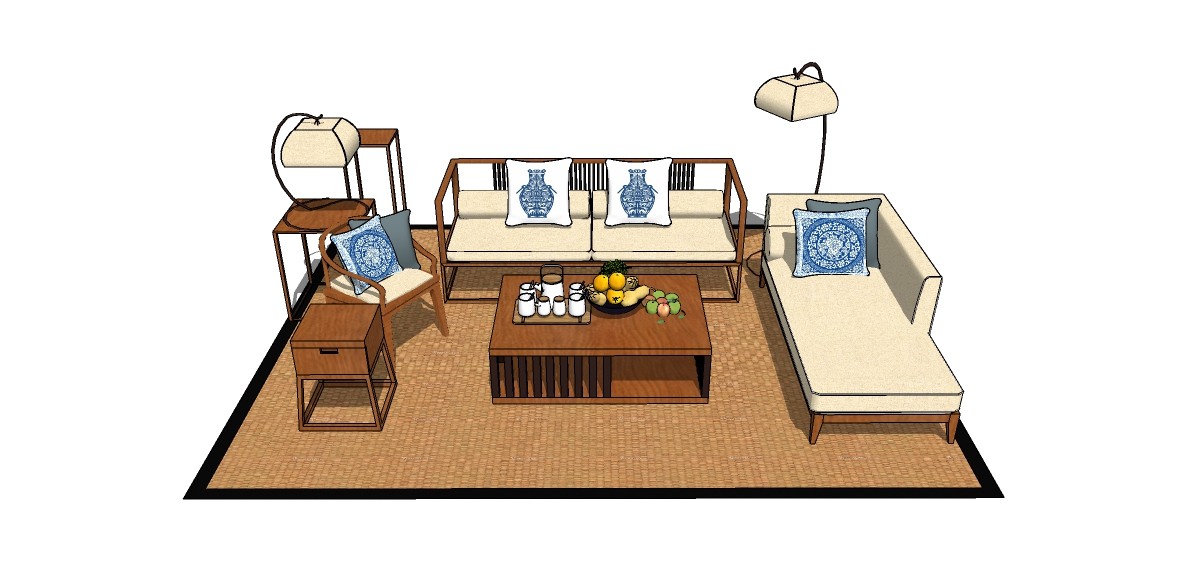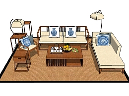 新中式多人沙发草图大师模型,多人沙发sketchup模型下载