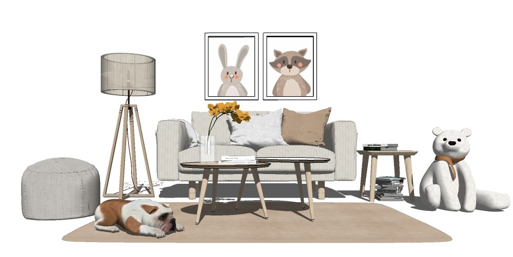 温馨萌宠沙发组合草图模型,沙发草图大师模型下载