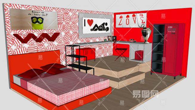 这是现代简约儿童卧室SU模型,儿童书籍摆件,挂画,十分适用于儿童房,儿童设计空间多样可爱,制作精致现代简约儿童卧室SU模型下载_sketchup图大师SKP模型