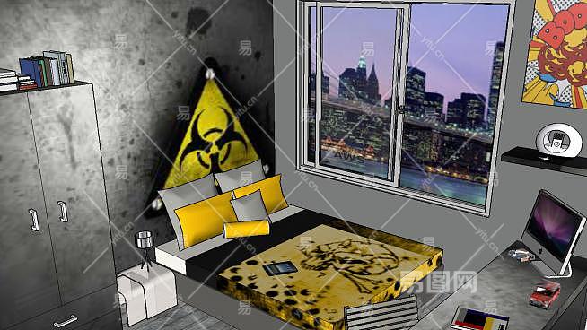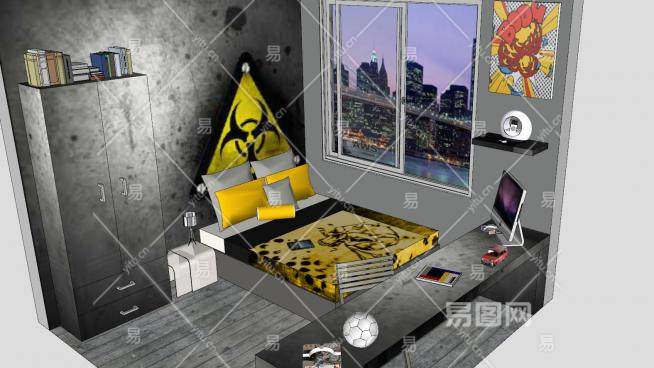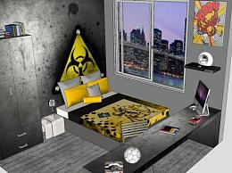 这是男孩卧室儿童装修SU模型,为男孩的卧室,危险的主题,与它可以服务于青少年,设计墙纸和拼板。男孩卧室儿童装修SU模型下载_sketchup图大师SKP模型
