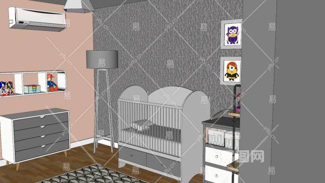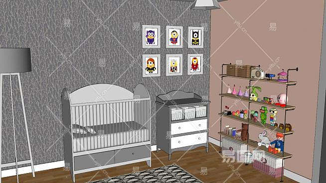 孩子房间婴儿房SU模型下载_sketchup草图大师SKP模型