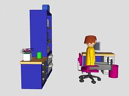 现代儿童房书桌家具SU模型下载_sketchup草图大师SKP模型