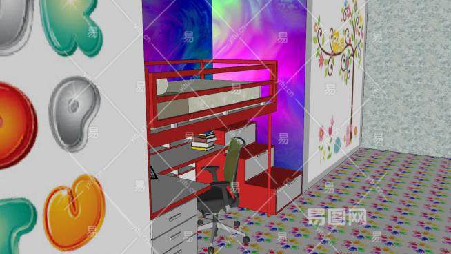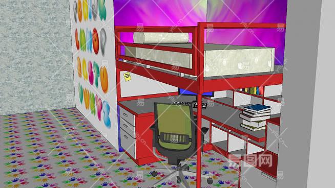 现代孩子房间SU模型下载_sketchup草图大师SKP模型