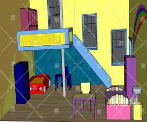 这是黄色简易装修儿童房SU模型,科学合理装潢儿童居室,对于儿童健康成长,培养儿童独立生活能力,启迪他们的智慧具有重要的意义,因此在儿童房的设计与色调上,要特别注意安全性与合理的搭配原理。黄色简易装修儿童房SU模型下载_sketchup图大师SKP模型