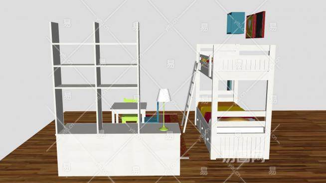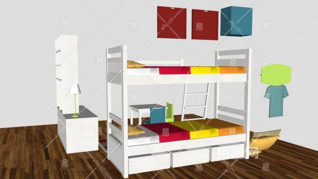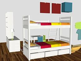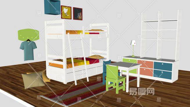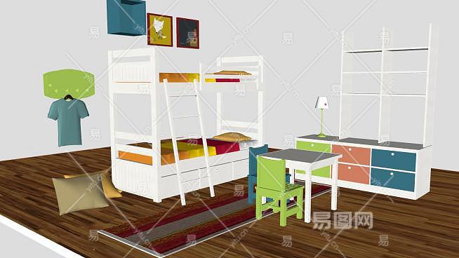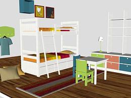 儿童卧房床铺家具SU模型下载_sketchup草图大师SKP模型
