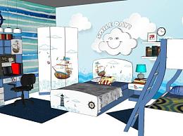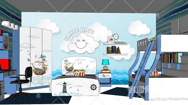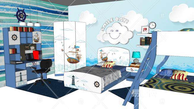 海洋风格儿童房SU模型下载_sketchup草图大师SKP模型