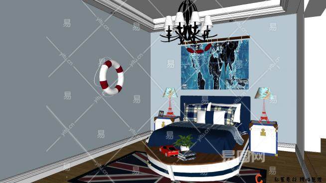 简欧风格儿童房SU模型下载_sketchup草图大师SKP模型