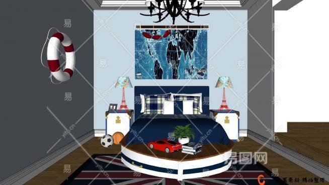 这是简欧风格儿童房SU模型,儿童书籍摆件,挂画,十分适用于儿童房,儿童设计空间多样可爱,制作精致。简欧风格儿童房SU模型下载_sketchup图大师SKP模型