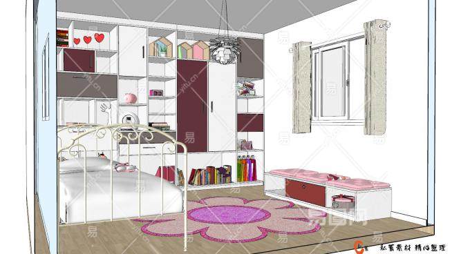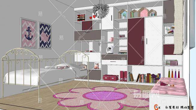这是简欧风女生卧室SU模型,儿童书籍摆件,挂画,十分适用于儿童房,儿童设计空间多样可爱,制作精致。简欧风女生卧室SU模型下载_sketchup图大师SKP模型