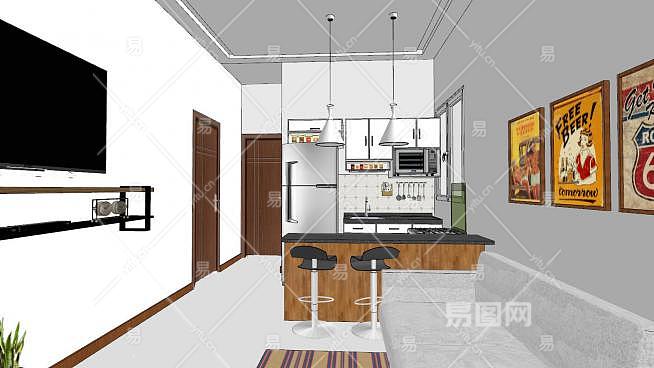 现代简约客餐厅sketchup模型下载_sketchup草图大师SKP模型