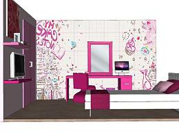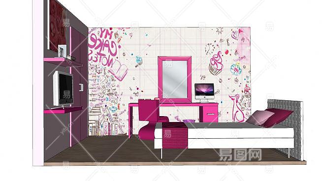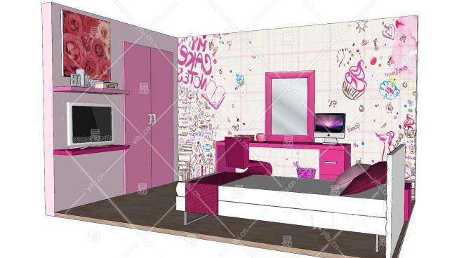 现代女生儿童卧室sketchup模型下载_sketchup草图大师SKP模型