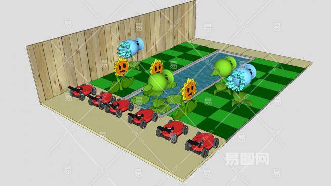 植物大战僵尸场景设计SU模型下载_sketchup草图大师SKP模型