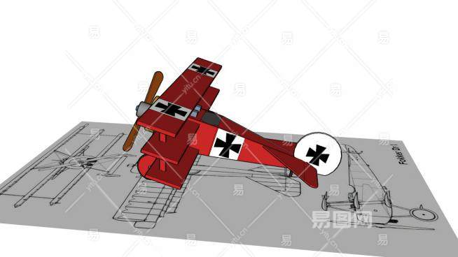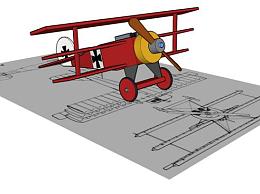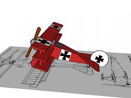 福克博士红色玩具飞机SU模型下载_sketchup草图大师SKP模型