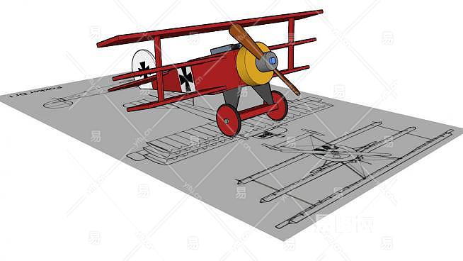 这是福克博士红色玩具飞机SU模型,玩具,泛指可用来玩的物品,玩玩具类社会中常常被作为一种寓教于乐的方式。福克博士红色玩具飞机SU模型下载_sketchup图大师SKP模型