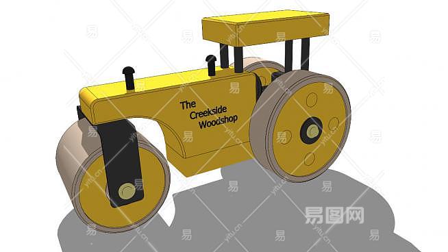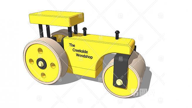 玩具黄色蒸汽压路机SU模型下载_sketchup草图大师SKP模型