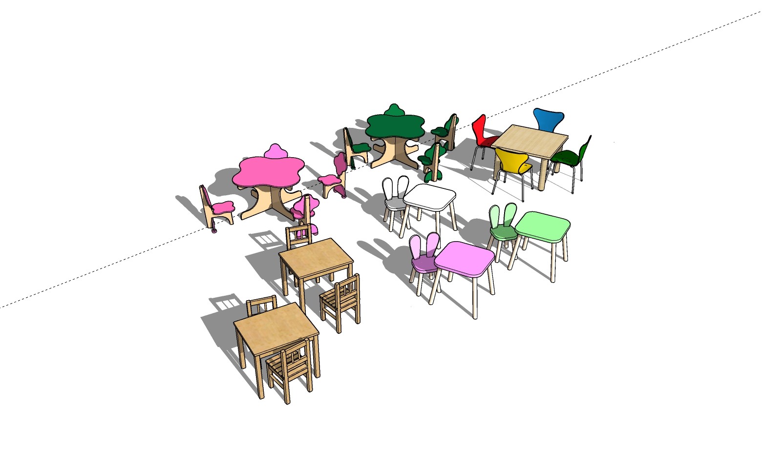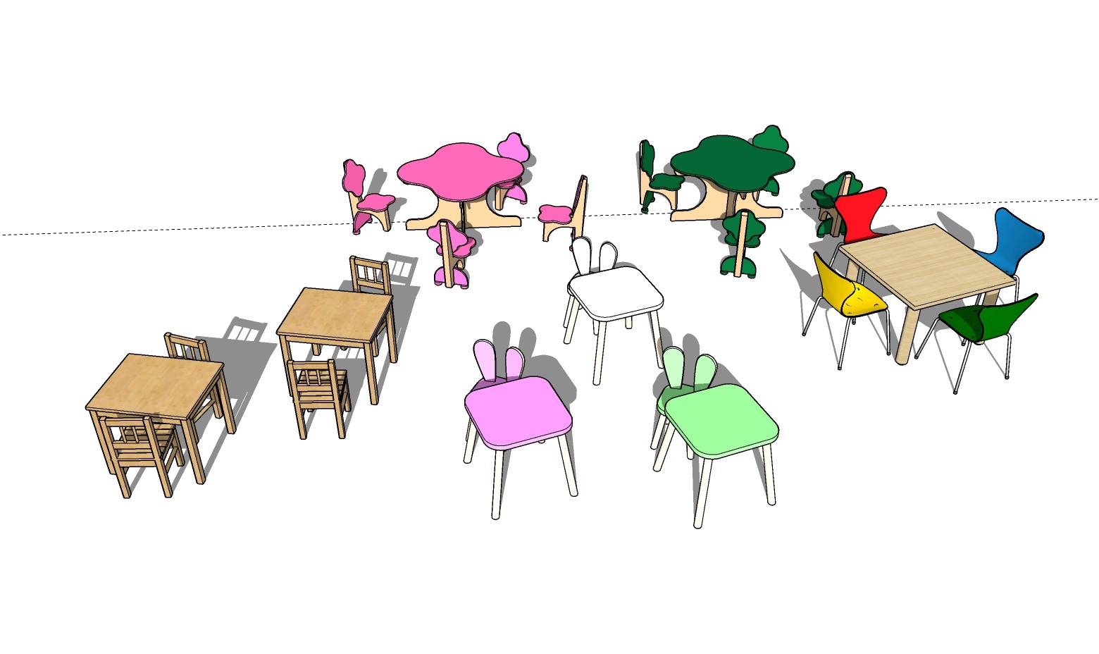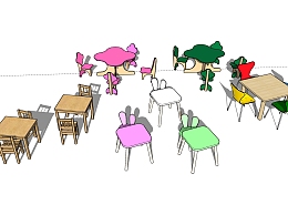 儿童桌椅草图大师模型, 儿童桌椅sketchup模型下载